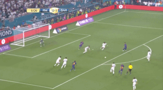 随着主裁判一声哨响,全场比赛开始。第2分钟,内马尔左路连续晃动后,脚部感到不适,随后队友将球踢出边线,队医进场治疗。第3分钟,布斯克茨送出直塞,梅西右路杀入禁区,扣过莫德里奇一脚搓射破门!巴萨取得梦幻开局,1-0领先!