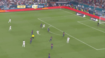 第21分钟,莫德里奇反击杀到禁区前沿也尝试一脚远射,皮球擦着横梁飞出底线!第22分钟,瓦拉内放倒内马尔,吃到黄牌。第27分钟,内马尔禁区左路接伊涅斯塔分球,连续晃动一脚兜射被挡出。
