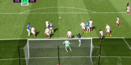 73分钟斯托克城左路传中,皮克福德的出击险些出现失误。75分钟舒波莫廷的倒钩打门没能踢正部位。