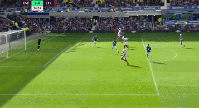 第4分钟斯托克城左路传中,皮克福德出击将球击出禁区。第9分钟乔-阿伦一脚直塞,小迪乌夫禁区右侧一脚似传似射的传球被皮克福德挡出底线。