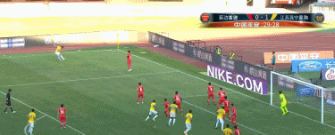 57分钟苏宁扩大领先优势,汪嵩开出任意球,池文一出击同队友姜卫鹏相撞,穆坎乔轻松打门得手,0-2,苏宁领先!