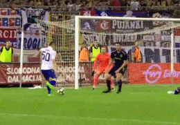 第43分钟,拉多舍维奇35米开外一脚世界破,皮球直入球门网窝,斯普利特海杜克1-0埃弗顿!