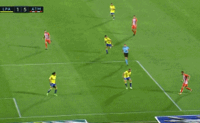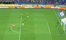 第62分钟,拉斯帕尔马斯防守球员解围不远,科克禁区外围得球后右脚弧线球攻门,皮球划出一道美丽的弧线飞入右上角死角,1-3!