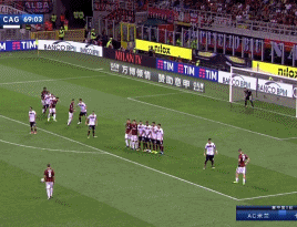 第70分钟,米兰再次取得领先!米兰获得禁区前偏右位置任意球机会,苏索主罚直接打门,皮球越位人墙飞入球门右侧!米兰2-1卡利亚里!