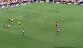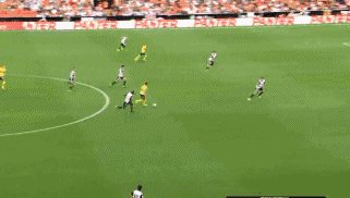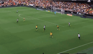 第18分钟,瓦伦西亚以同样方式还以颜色,佩雷拉在前场持球杀至弧顶,脚后跟一扣获得射门空间后抬脚就射!可惜球高出了横梁。