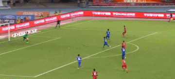 第53分钟,吕文君中圈附近送出过顶长传,武磊高速插上将球卸下,随后的射门打高。