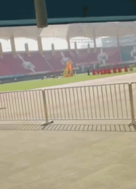 有球迷拍到建业主场航海体育场正在做法事,道士聚集在草坪中央为球队祈福。