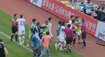 不过也有现场球迷爆料称是因为毅腾球员不满上半场比赛裁判点球判罚,在中场结束时围堵裁判讨要说法,在这个过程中与球场保安发生冲突被打伤。