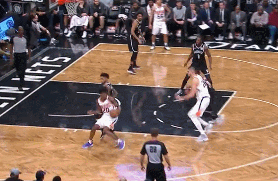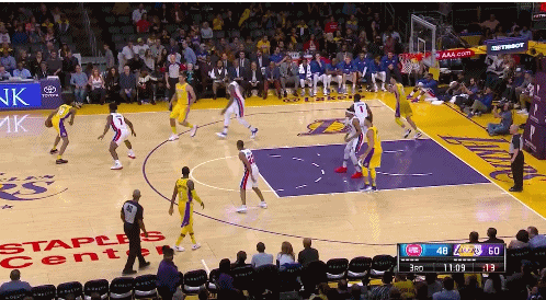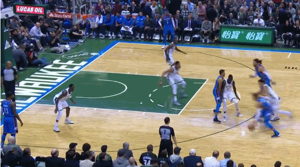 库兹马躲在外线埋伏,为的就是和内线的兰德尔暗度陈仓,一记no look pass长炸弹直塞篮底,据粗略计算,这球时速1000KM。
