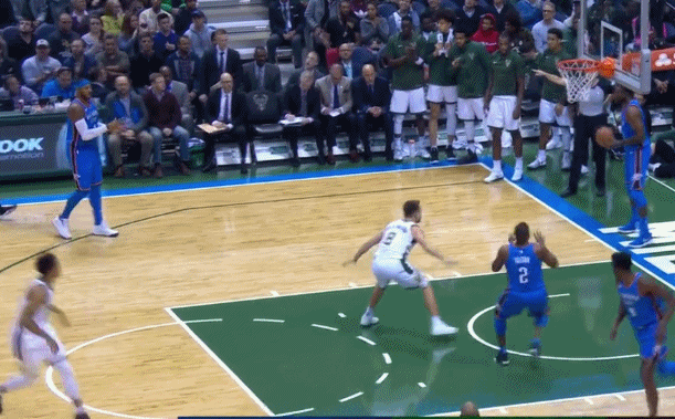 威少如入无人之境杀入篮底,随便耍了个左手飘逸飞扣,身下的字母哥看到这样的表演,也只能无奈地表示:这才是MVP啊!