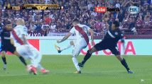 下半场第2分钟,拉努斯利用河床防守混乱打进一球:在与亚历桑德罗配合之后,桑德禁区前沿抽射得手,2-2!拉努斯扳平了比分。