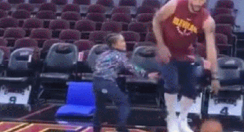 是亲生的吗?罗斯赛前热身老大爷式运球过人晃倒自家宝贝儿子。