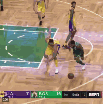 相比之下,拿到湖人全队最高18分的莺歌,出手11次命中7球,然而这么好的手感,在整个第四节他只有一次补篮的机会。