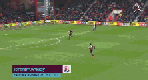 2016年斯托克城球员阿费莱在禁区前沿的推射破门。接过队友的横敲,不经停球调整,直接起脚劲射,皮球划出一记闪电弧线钻入球门近角。