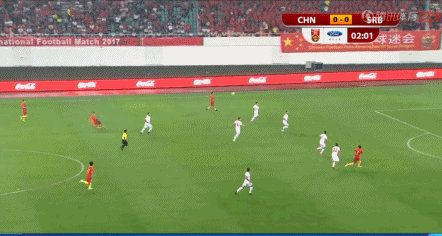 第2分钟,中国队左路传中,武磊胸部停球获得面对塞尔维亚门将斯托伊科维奇的机会,但武磊的最后一停过大,未能形成射门。