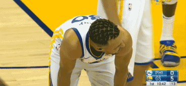 开场不久,库里就在防守端和西蒙斯有一次接触,西蒙斯给队友掩护,库里追击,西蒙斯膝盖顶了库里大腿,库里整个人被撞得也是翻滚了一圈。