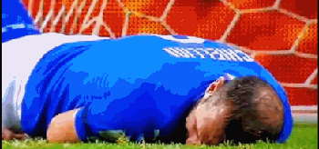 基耶利尼在与瑞典前锋贝里的一次卡位拼抢中被对手推倒,这本是一个普通的冲撞,但基耶利尼却仿佛受了很大的力一样向前摔了很远。而且他倒地之后,他抬头偷看裁判判罚的动作被摄像机镜头清楚地记录了下来,显然基耶利尼夸张地摔倒目的性非常强——让主裁判向贝里出牌。
