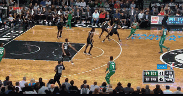 可能是面具影响了手感,欧文开场后前两次出手全部偏出,首节比赛他6投2中。但随后他迅速调整手感,凭借两记三分球命中贡献了6分。