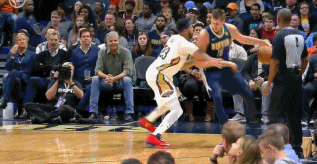 下半场比赛刚刚开始,戴维斯就在防守端和对面的约基奇1对1交锋,约基奇一个大转身,手臂似乎击到了戴维斯的头,戴维斯痛苦倒地,双手抱着头,长时间没起来,队友都来查看他的情况,戴维斯还是一脸痛苦,手捂着脸,好容易才被队友拉起来。
