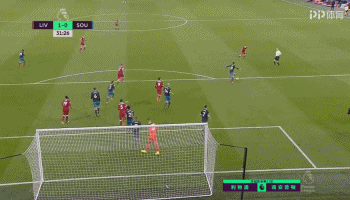 利物浦vs南安普顿: 第30分钟,利物浦开出角球,第一点被南安普顿后卫头球解围到塔迪奇脚下,塔迪奇带球被利物浦球员在禁区弧顶抢断,分给萨拉赫,萨拉赫稍作调整,直接打门,球直入球门右上角。