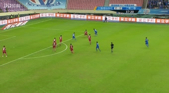 第17分钟,秦升中场直传打穿上港防线,曹赟定左路插上得球突入禁区一脚劲射,皮球击中左门柱弹出底线,不过边裁早已举旗示意曹赟定越位。