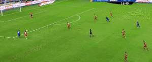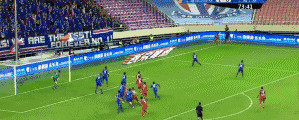 第74分钟,上港获得右侧角球传入禁区,下半场替补登场的韦世豪前点鱼跃冲顶,皮球击中右门柱弹出底线。