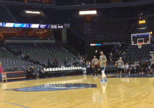 曾经做过队友的两人在热身时还进行了垃圾话交流,帕森斯用自己的语言和动作“挑衅”诺天王,“司机”则迈开自己的老腿、用一记双手勉扣回应帕森斯,扣完之后还“Dab”了一下,逗得现场所有人一阵大笑!
