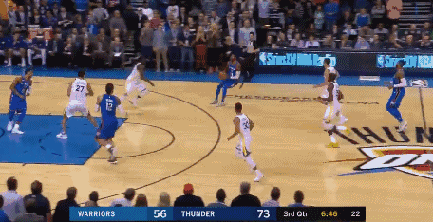 首节雷霆全队就开始发威,卯足了劲想要将勇士拉下马,他们利用勇士的失误连续完成反击得分。到了次节勇士的进攻依然不顺畅,随着乔治压哨中投命中,半场战罢,雷霆65-48领先勇士17分!