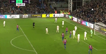 水晶宫vs斯托克城:第53分钟,肖克罗斯做球,沙奇里中路得球衔枚疾走连过数人,随后来到禁区线前拔脚怒射,皮球应声入网。