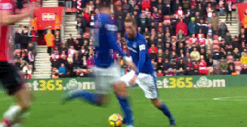 南安普顿vs埃弗顿:上半场伤停补时阶段,西古德森禁区外轰出一脚重炮,皮球经过立柱横梁三次反弹后滚入球网。