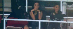 在C罗踢点球时,多洛雷斯背对着球场,趴在了椅背上。在C罗出脚时,乔治娜伸出右手准备拍向准婆婆。由于C罗的射门被罗伯托扑出,乔治娜的右手停在了空中。此时C罗快速补射破门,乔治娜这才伸手拍了下多洛雷斯。