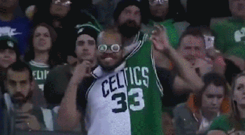 今天凯尔特人主场最亮的不是欧文,不是霍福德,不是史蒂文斯,而是一个在看台风骚搞怪的拉里伯德的球迷。话说,这舞蹈应该能治颈椎病。