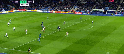 半场补时第1分钟,莱斯特城扩大比分!来自于反击的机会,恩迪迪传球,马赫雷斯沿右路内切后左脚弧线球破网!莱斯特城2-0热刺。