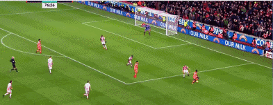 第83分钟,埃姆雷-詹后场长传,皮特斯解围失误,萨拉赫断球后左脚推射入网!0-3!