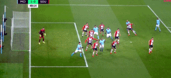 下半场第47分钟,曼城取得领先。来自前场左路的任意球机会,德布劳内送出传球到前点位置,范戴克在奥塔门迪的力逼下不慎将球挡进自家大门,1-0!