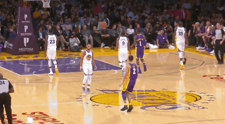 面对库里,湖人的篮筐依旧是那个最好的防守者。这不,库里来了一个三不沾,本场他投了2个三不沾。