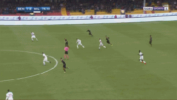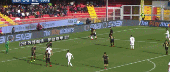 第36分钟,罗马尼奥利和博里尼两次边路传中均被解围。第37分钟,凯西右路搓传到门前,博纳文图拉的头球被布里尼奥利扑出,博纳文图拉自己再头球补射破网,贝内文托0-1AC米兰!