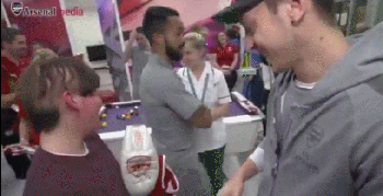 这位小哥获得厄齐尔签名球衣后可高兴坏了。