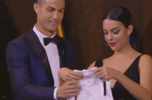 上个月,乔治娜刚刚为C罗产下爱女阿拉娜-玛蒂娜(Alana Martina),这也是C罗的第四个孩子。在金球奖的颁奖典礼上,C罗和乔治娜收到《法国足球》送出的特别礼物——一件印有五个金球图案的婴儿服。