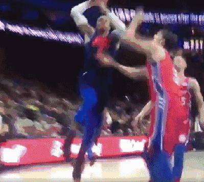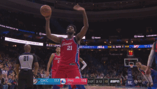 第一个加时末段,威少进攻被恩比德帽掉,沙里奇3分不进,双方又再次进入加时。本来双加时已经是本赛季的第一次了,但是这两队还是忍不住再搞个大事情。