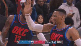 然而,当比赛结束的时候,威少也向恩比德送去拜拜!这两人估计杰伦的歌听多了,所以在故事的最后他们还是说了拜拜~