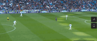 比赛第90分钟,巴萨后场长传到前场找苏亚雷斯,这时C罗也积极回撤到后场,并且积极协助队友防守,甚至险些断下苏亚雷斯的脚下球。断球没有成功之后,C罗依然积极向后场回收,补充球队中路的防守。随后苏亚雷斯将球传给梅西,这时C罗又主动上前,对位紧盯梅西,封堵梅西的射门角度。