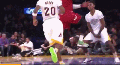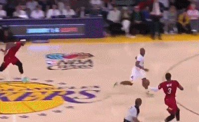 2010年圣诞大战湖人对阵热火,在第一节比赛还剩4分钟时,热火打反击,韦德运球推进到前场,到罚球线附近往头正上方空中一抛,詹姆斯后排跟进,单手展腹将球狠狠砸进篮筐。这一球还不够精彩?