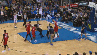 雷霆主场迎战猛龙,第二节场上出现了一些冲突。