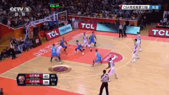 今晚的CBA焦点战,山东高速在主场对阵北京首钢,次节比赛,小丁一次跨步大拉杆进攻得手。