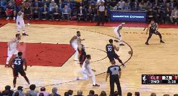 第二节还剩3分34秒,西亚卡姆在左侧侧翼接球,一步抹过乐福——甚至都没有用变向,直接杀向篮下,而两侧特里斯坦-汤普森和勒布朗-詹姆斯两个人像是在玩“一二三木头人,谁先动谁是狗”的游戏一般,目送他完成这记扣篮。