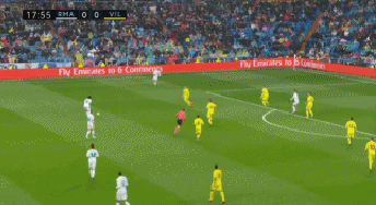 上半场比赛开始,比利亚雷亚尔率先开球。1分钟,卡瓦哈尔前场右路橫传禁区,贝尔领球稍大被门将没收。3分钟,巴卡禁区前右路打门被瓦拉内挡出边线。12分钟,克罗斯右侧角球发入禁区,C罗头球点到门前,贝尔头球破门,裁判示意贝尔越位在先,进球无效。