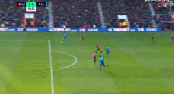 比赛第52分钟,伊沃比直传,前场贝莱林接球后加速度突入禁区右侧,起脚抽射,皮球被贝格维奇挡了一下后缓缓弹入球门。阿森纳客场取得领先。
