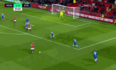 第38分钟,红魔成功扩大比分!瓦伦西亚前场断球,卢卡库右路传球找到禁区前沿的博格巴,博格巴随即横传,马夏尔中路迎球一脚推射,皮球直挂死角!曼联2-0领先斯托克城!