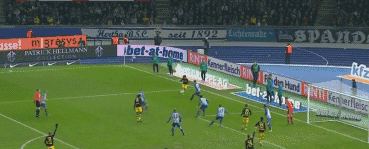 第71分钟,多特扳平比分!桑乔禁区左侧底线附近起球传中,香川真司后点鱼跃冲顶破门!赫塔1-1多特!